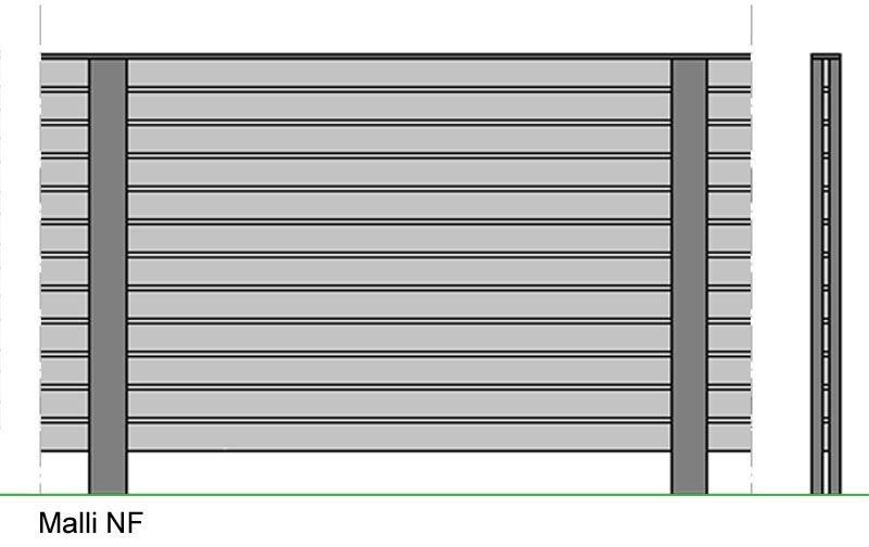 Vaakalauta 20 x 98, lautojen väli 16 mm. Korkeudet cm: 80, 100, 120, 140, 160, 180. Ei vaadi erillisiä tolppia.
